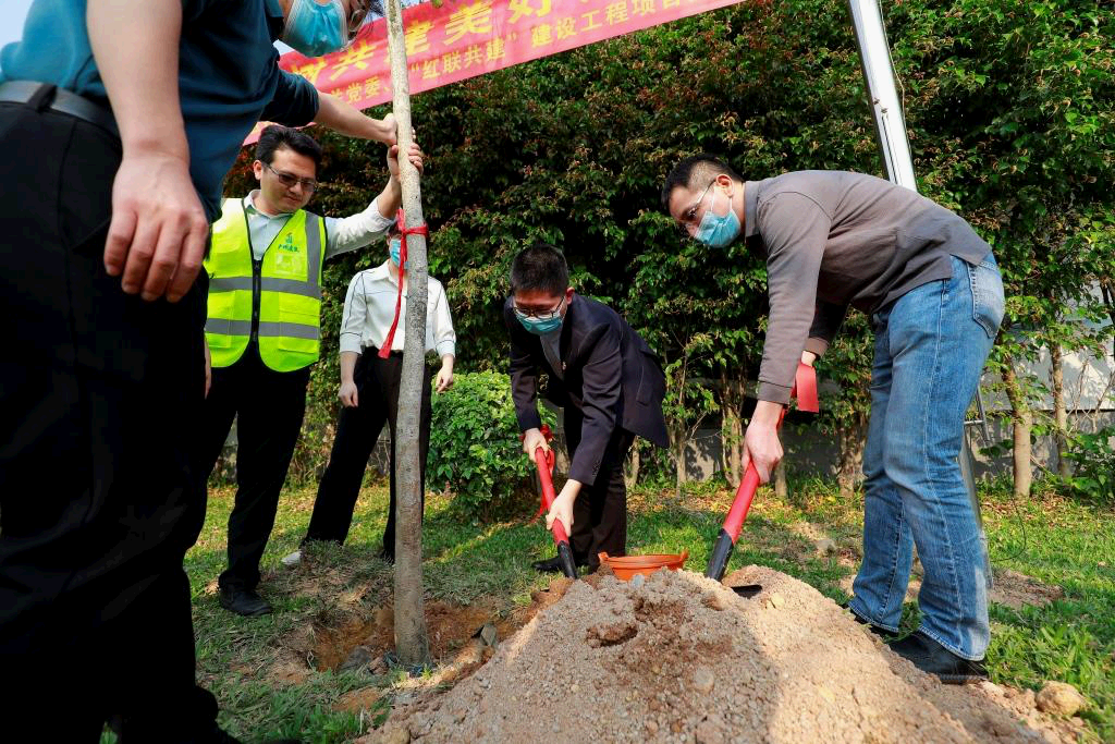 共植一株“綠”,共護(hù)黃埔“藍(lán)”。活動(dòng)最后全體黨員開展了“黨建引領(lǐng)凝心聚力、植樹共建美好黃埔”義務(wù)植樹活動(dòng)。黃埔區(qū)住建局領(lǐng)導(dǎo)與機(jī)施集團(tuán)副總經(jīng)理曾少鋒共同栽下了象征著和諧共進(jìn)的宮粉紫荊樹,以實(shí)際行動(dòng)踐行習(xí)近平總書記提出的生態(tài)文明思想,傳播綠色發(fā)展理念,倡導(dǎo)綠色文明施工。